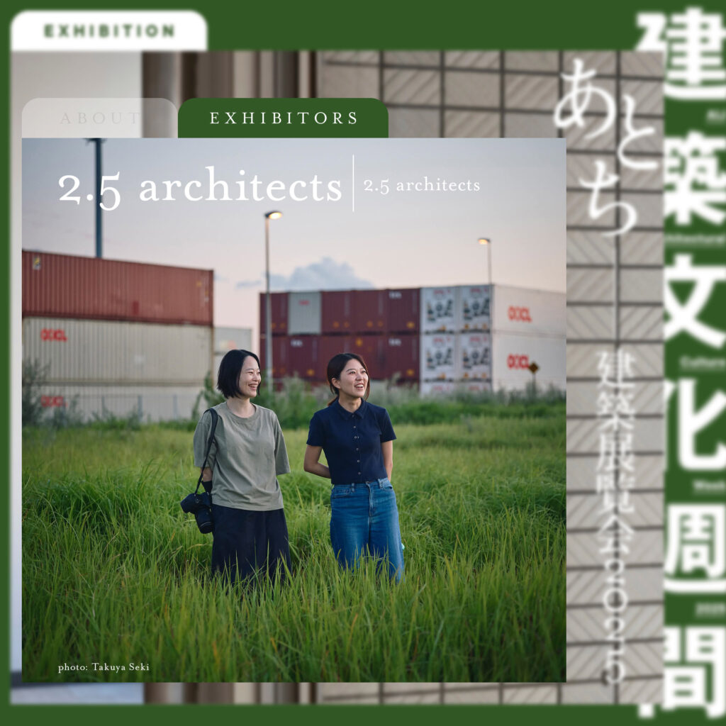 登壇者:2.5 architects+市川紘司(東北大学助教)+キュレーター 日時:10月18日(土)13:30~(13:00開場) 定員:15名 ※要事前申込み。以下のフォームからお申込みください。https://docs.google.com/forms/d/e/1FAIpQLSd4h9Gzy7uDlYPfEbW_oOC2AJcryNyMlfZykp6Up53Pwp2c5A/viewform